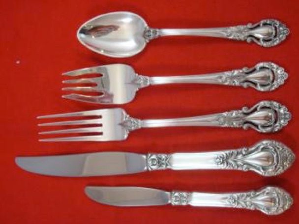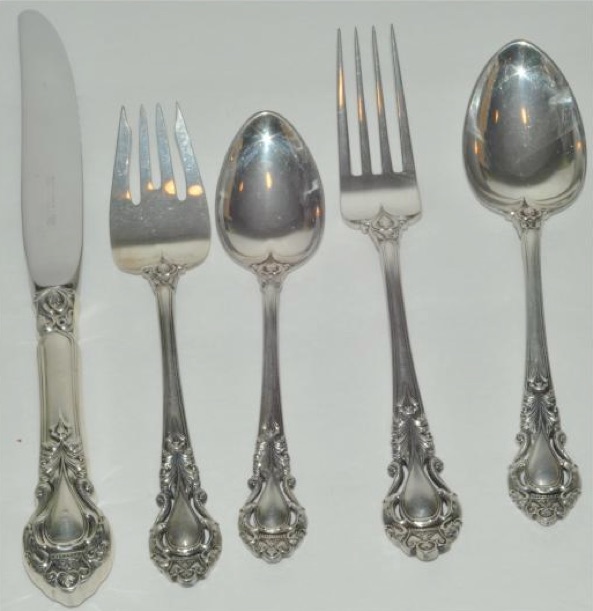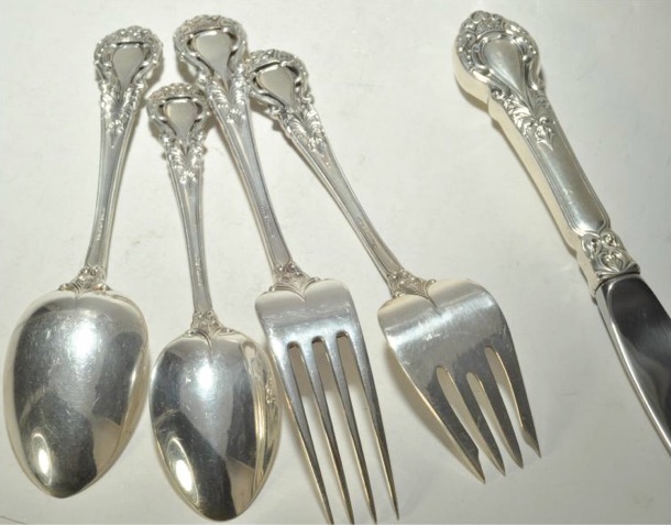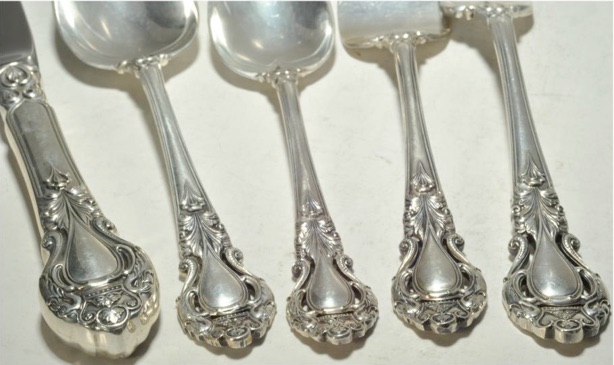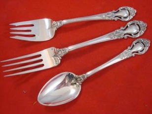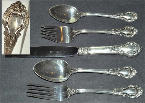 The following photos were used on ebay by a seller of 64 pieces of Royal Dynasty. The photos showed the detail of the silver and the different bowl patterns used.