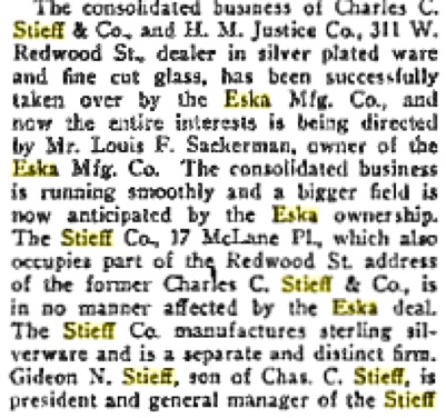 Below is an article in the March 19th 1919 issue of the Jewelers Circular concerning the sale of Charles C. Stieff & Co.
