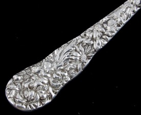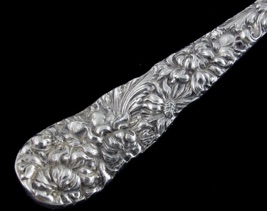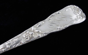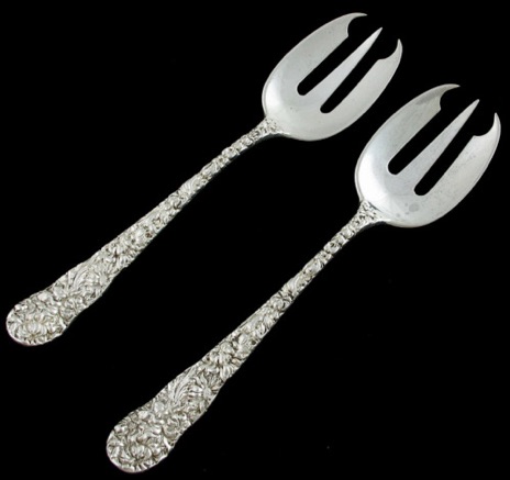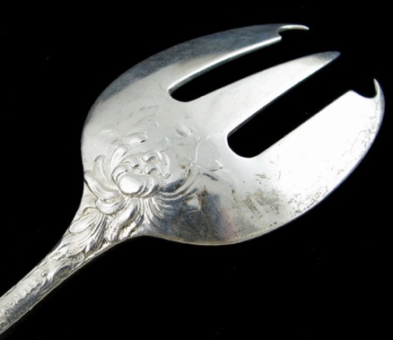 In the 1910 Stieff Catalog, this is how SALAD FORKS appeared. Later in the teen’s the forks would develop into the shape we know today. These are in the Chrysanthemum pattern which ended by 1919.