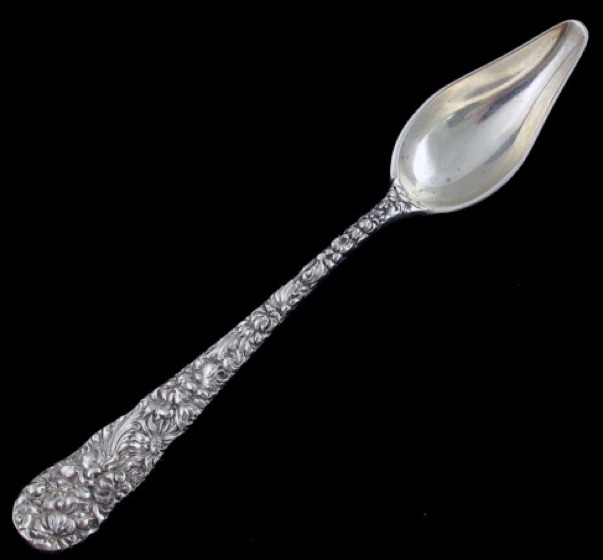 This is a PAP Spoon for feeding babies in the Chrysanthemum pattern. It is not marked Stieff or BSSCO, but was made by the company.