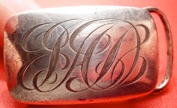 This piece measures 12” in width, 7.25” in length and 1 & 1/8” tall. There is a center monogram and the date 1898. Reverse bears the BSSCO mark with Crown and the #25