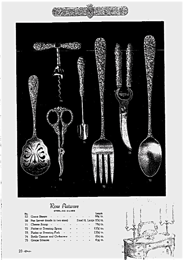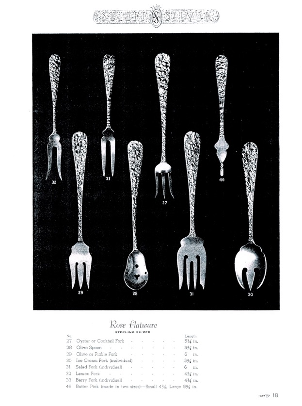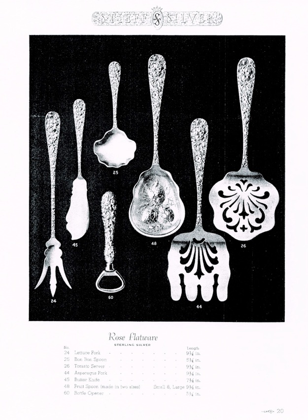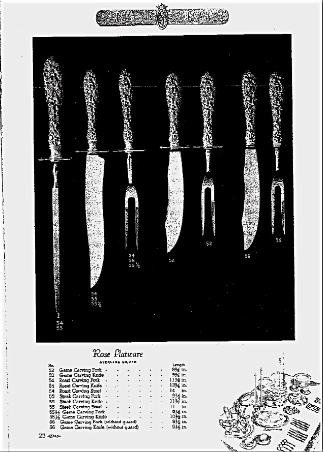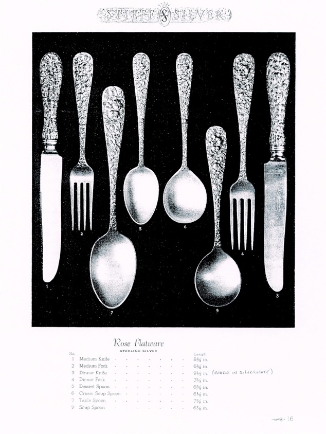 I would like to point out that flatware does not use any type of date mark. The H, M or T found on some flatware is not a date mark. Nor is the B, C or D found on others. More about dating by pattern change is on the Date Marks and Year Differences