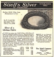 This site, THESTIEFFCOMPANY.COM receives no money or compensation from any of the references or companies listed on this site. We wish to thank others for the use of material from their sites and it is published here as an educational tool only. Some images have come from unknown original sources. If I have used your image without credit or if it needs to be removed, please contact me. We encourage visitors to venture to the other sites shown on this one to learn more about silver and view the images of craftsmanship that they share with all of us. Ad revenues from the google ads helps me maintain this site for the use by silver collectors and those who are just “wondering” about their grandmothers silver and what’s what in the silver chest. I do not make a profit from the publication of this site, it is for educational purposes only.
