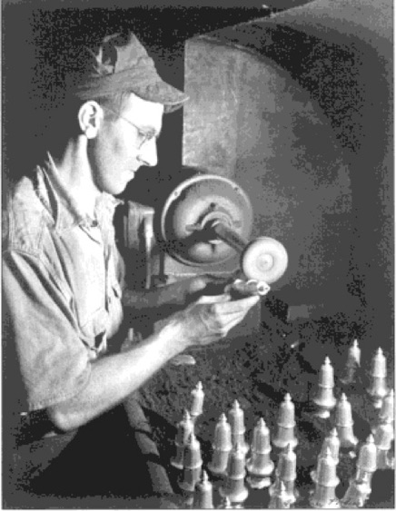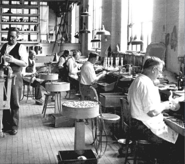 Silversmiths working on Coffee Pots and Candlesticks at the Wyman Park Driveway Factory