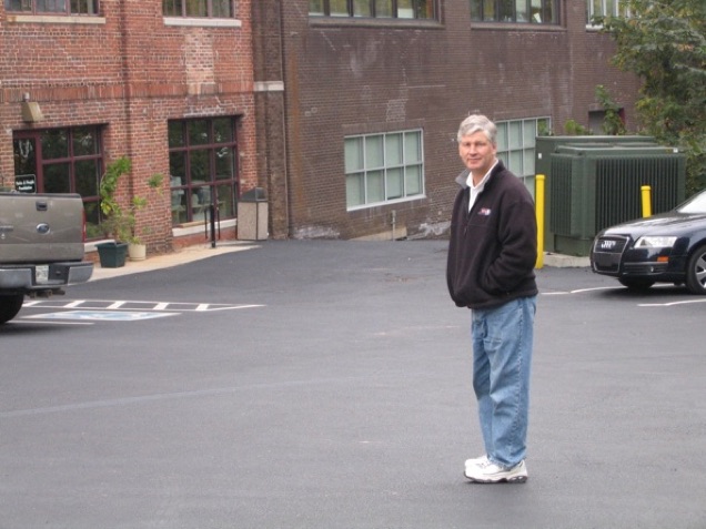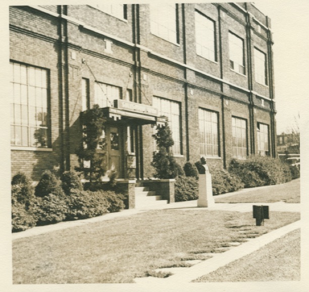 Charles C. Stieff III at the rear of the building. The darker brick at the right is the 1970 addition made for expanding pewter operations. Now that building is a branch of Johns Hopkins University.