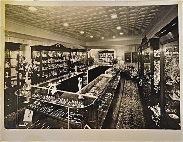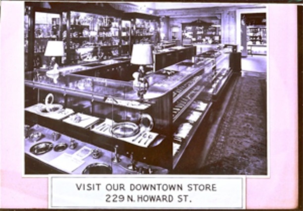 An early photo of the Howard Street Store. Stieff President, Gideon Stieff loved bronze statues according to his son Rodney... in particular those of ladies. On the ends of the showcases are examples of Gideon’s bronze statues