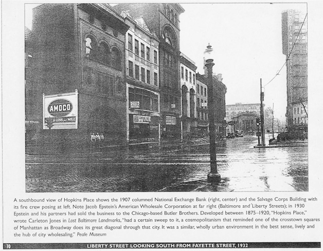 The building just right of center with the double arches is 17 N. Liberty Street, The Stieff Company.