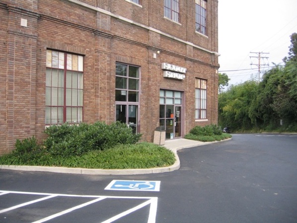 The middle doors with the six panes of glass above them is the old Stieff employee entrance. The Scout Shop next door is a new door cut in during renovation.