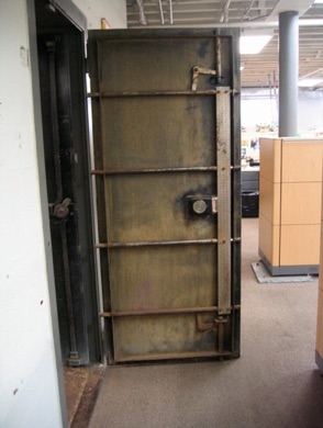 The basement vault where at the end of the day, any silver would be locked up until the next morning. Now a storage closet for The Parks People organization. A second vault was on the first floor and still exists today.