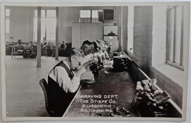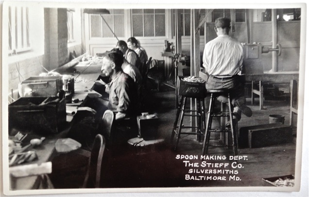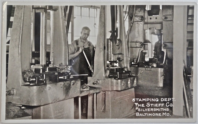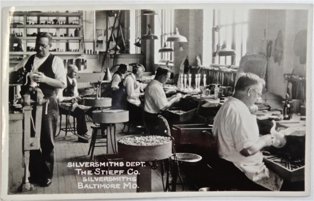 These photos are from the Baltimore Museum of Industry. They and other important artifacts and records of The Stieff Company were donated to the museum when Kirk-Stieff operations left Baltimore in 2000. I thank the museum for allowing me unlimited access to the records.