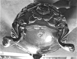 While tea and coffee sets are not very common, the large trays that one sometimes sees are fairly rare. They were very expensive as they required a lot of silver thickness to be able to hold the weight of a coffee and tea service, full of liquid. Often, the trays were never ordered, so few sets actually have them. Here is a beautiful example of a 1958 tray.