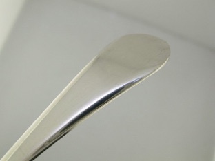 ITS FINE FLUTED BOWL AND GRACEFUL HANDLE MADE THIS REVERE TEASPOON A RARE FORM. MADE IN 1785 IN HONOR OF THE MARRIAGE OF NATHANIEL AND ABIGAIL GILMAN, THE ORIGINAL SPOON'S HANDLE CONTAINED THE INITIALS NAG ENGRAVED IN SCRIPT AND SURROUNDED BY A DOTTED AND CHASED ELLIPSE, PENDANT FOLIAGE AND A FLOWER BELOW. ONLY FOUR PATRONS ARE KNOWN TO HAVE ORDERED REVERE FLUTED TEASPOONS, WHICH WEAR MORE EXPENSIVE THAN THE PLAIN ONES. THE ORIGINAL SPOON WAS A GIFT OF THE PAUL REVERE LIFE INSURANCE COMPANY TO THE MUSEUM IN 1963. REPRODUCTION LENGTH 5". PERFECT FOR TODAY'S ENTERTAINING NEEDS, THESE SPOONS CAN BE USED AS A SET OF COFFEE SPOONS, OR FOR DESSERT OR FRUIT. SEPARATELY, THE SPOON FITS PERFECTLY IN A JAM OR CONDIMENT JAR OR SUGAR BOWL."