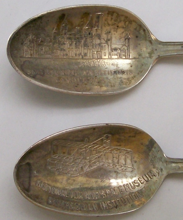 The spoon of the “Castle” Admin. Bldg. is fairly common, the National Air and Space Museum spoon is much rarer.
