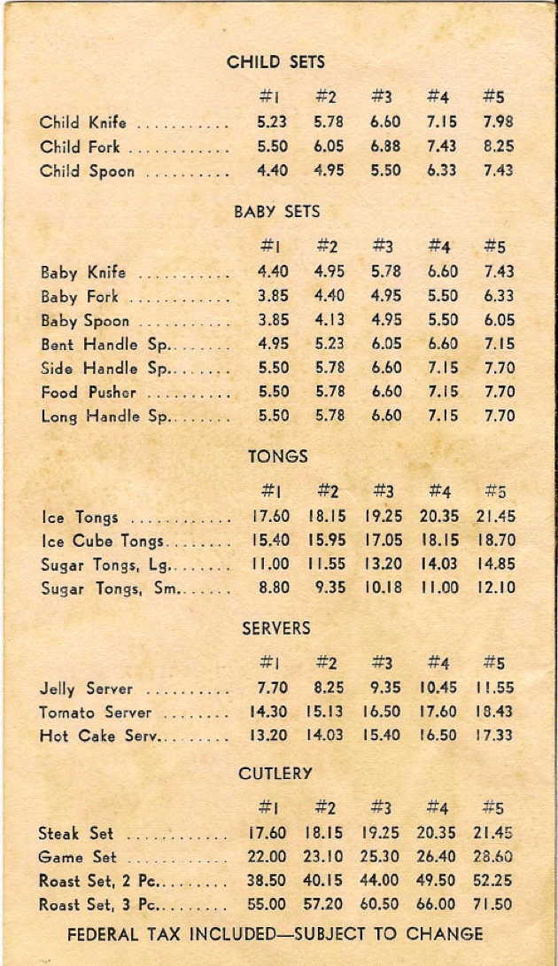 This post card sized price list was provided by a reader of the site. We thank “Amy” for your assistance.