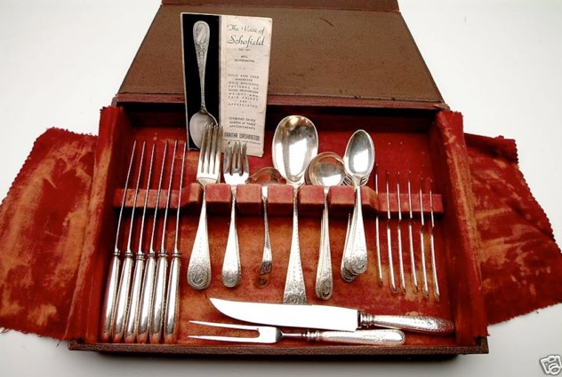 "The very essence of the Early American spirit is reflected in Schofield's hand engraved Martha Washington pattern. The inspiration for this pattern was taken from an old tea spoon in the Boston Museum of Fine Arts; a tea spoon which was made by Joseph Loring (1743-1815) of Boston, who served in the Revolutionary War as a Lieutenant. Each piece in this set reflects the dignity, charm and rare simplicity of this lovely traditional style. The Martha Washington is a pattern you would be proud to hand down to future generations."
