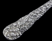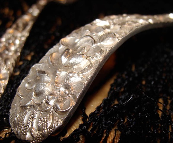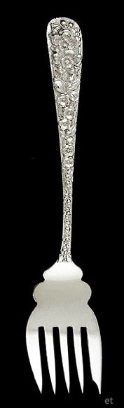 The best way is to search several different ways. Search for Stieff and your pattern name, but also just by Stieff and keep checking in the just listed. I check several times a day. I do that because some people who are selling on Ebay do not always know the pattern, or they have it close but not right. Princess pattern is often listed at Hand Chased Rose. I see a lot of “Stieff Repoussé” listed but no pattern given. So you might get a better deal if the person selling is clueless. Some listing say things like “Stieff, pretty floral pattern” or “Stieff flatware, fork”.