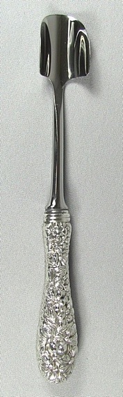 There are also some pieces that you will see in “shops” out there on Ebay, on some of the silver sites or replacement stores that are “re-created” silverware. Workmen take the hollow handles of Stieff and various other makers knives and attach new parts on order. A classic example is the hooded asparagus server that you see in a lot of places for 45-125 dollars. Others are cake knives, salad tools, punch ladles etc.
