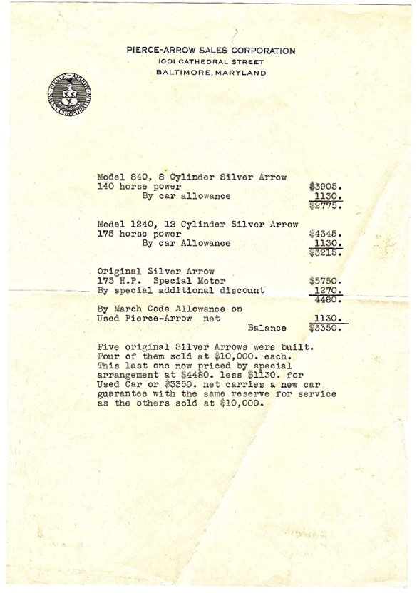 Gideon N. Stieff purchased a 1933 Pierce-Arrow Silver Arrow through the Baltimore Pierce-Arrow dealer. It would appear that he bought the car in March 1934.