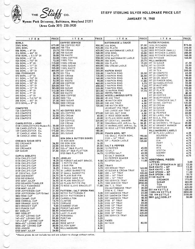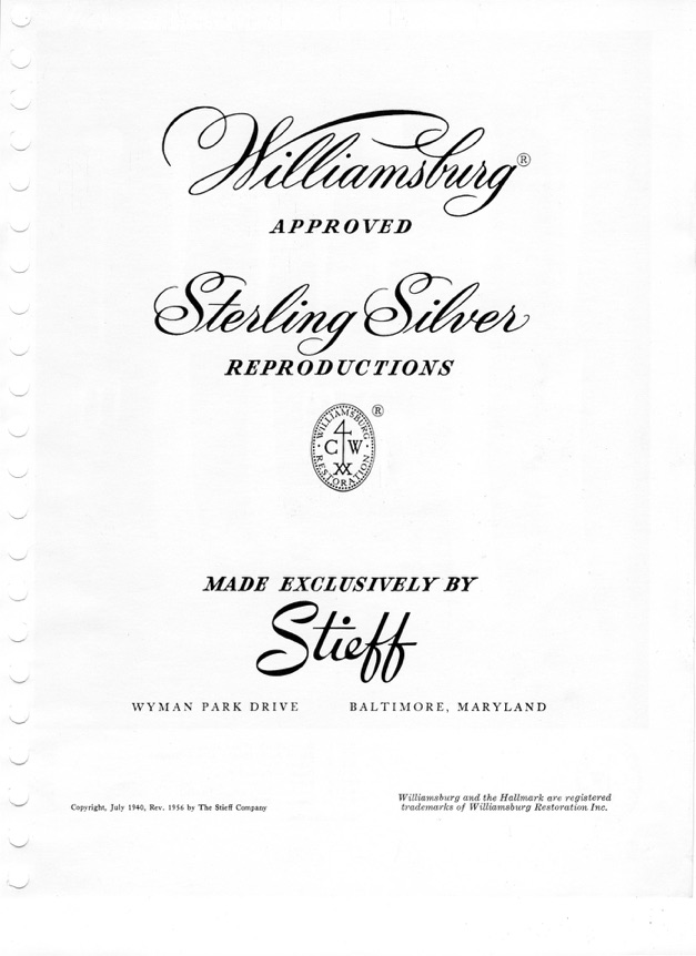 1957 Stieff Hollow Ware & Williamsburg Introduction