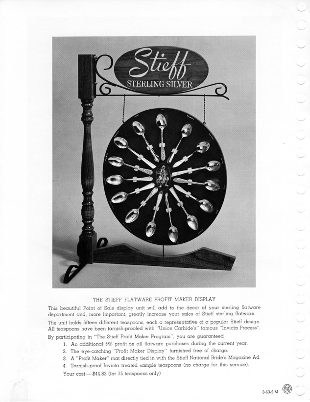 This counter top display was offered to dealers to feature Stieff patterns.