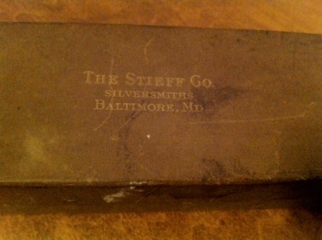 Post June 1904 Stieff Silver is always marked STIEFF. This is either on the blade of the knife, and on older knifes, also on the handle. Forks and spoons and other pieces will have the name on the back of the handle. Early pieces will be marked with the Crown B for Baltimore Sterling Silver Co. which was the name of the company prior to June 1904.