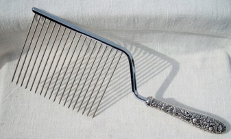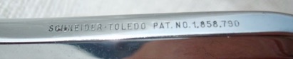 Cale J. Schneider invented what is called a CAKE BREAK (or Breaker) in the early 1930s. A lot of companies bought the utensil part of the cake break from C. J. Schneider Mfg. Co of Toledo Ohio and put it on their silver handles. The utensil part is marked SCHNEIDER Toledo, which makes some people think that Schneider is the maker of the silver... but they were not. They only made the cake break part. These “cake breaks” are often found on brightly colored Lucite or Bakelite handles, but silver plated or sterling silver was fairly common too.